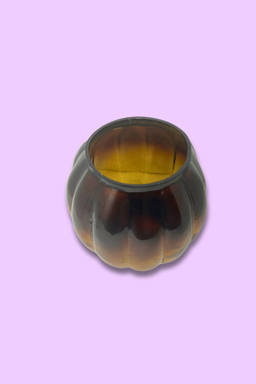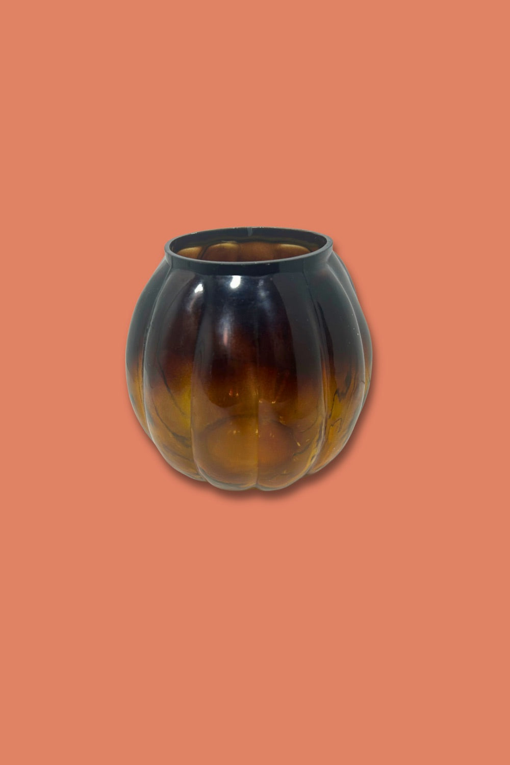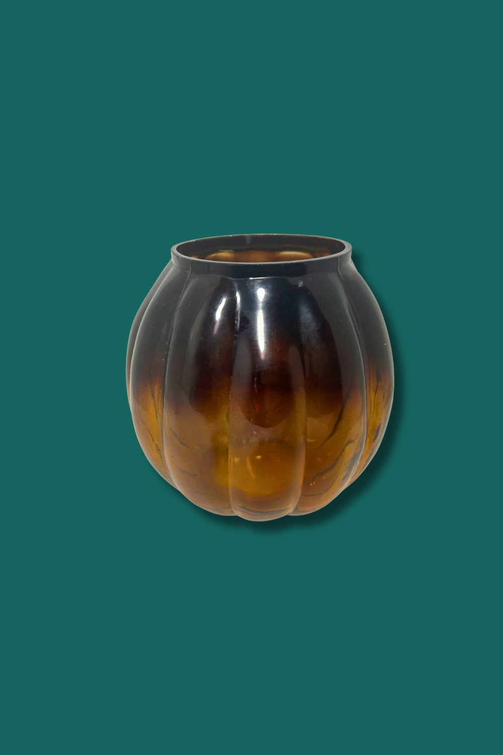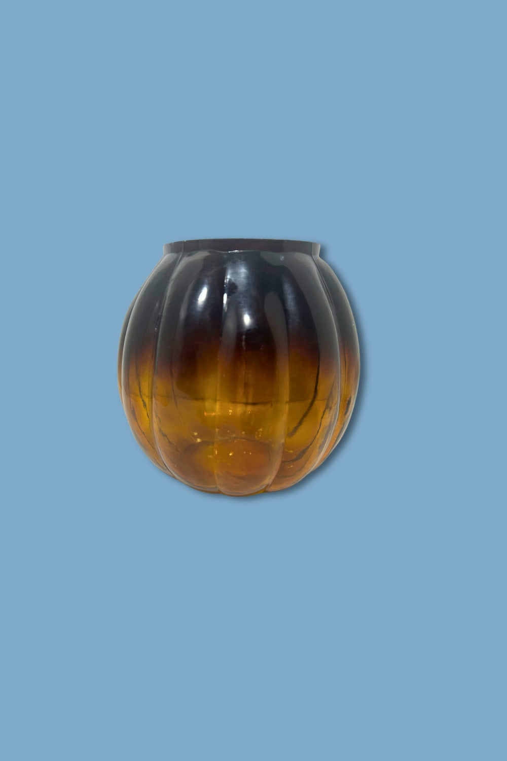 Vintage Amber Glass Pumpkin Candy Jar (Base Only) — Ribbed Molded Glass, 1970s–90s, Anchor Hocking-Style