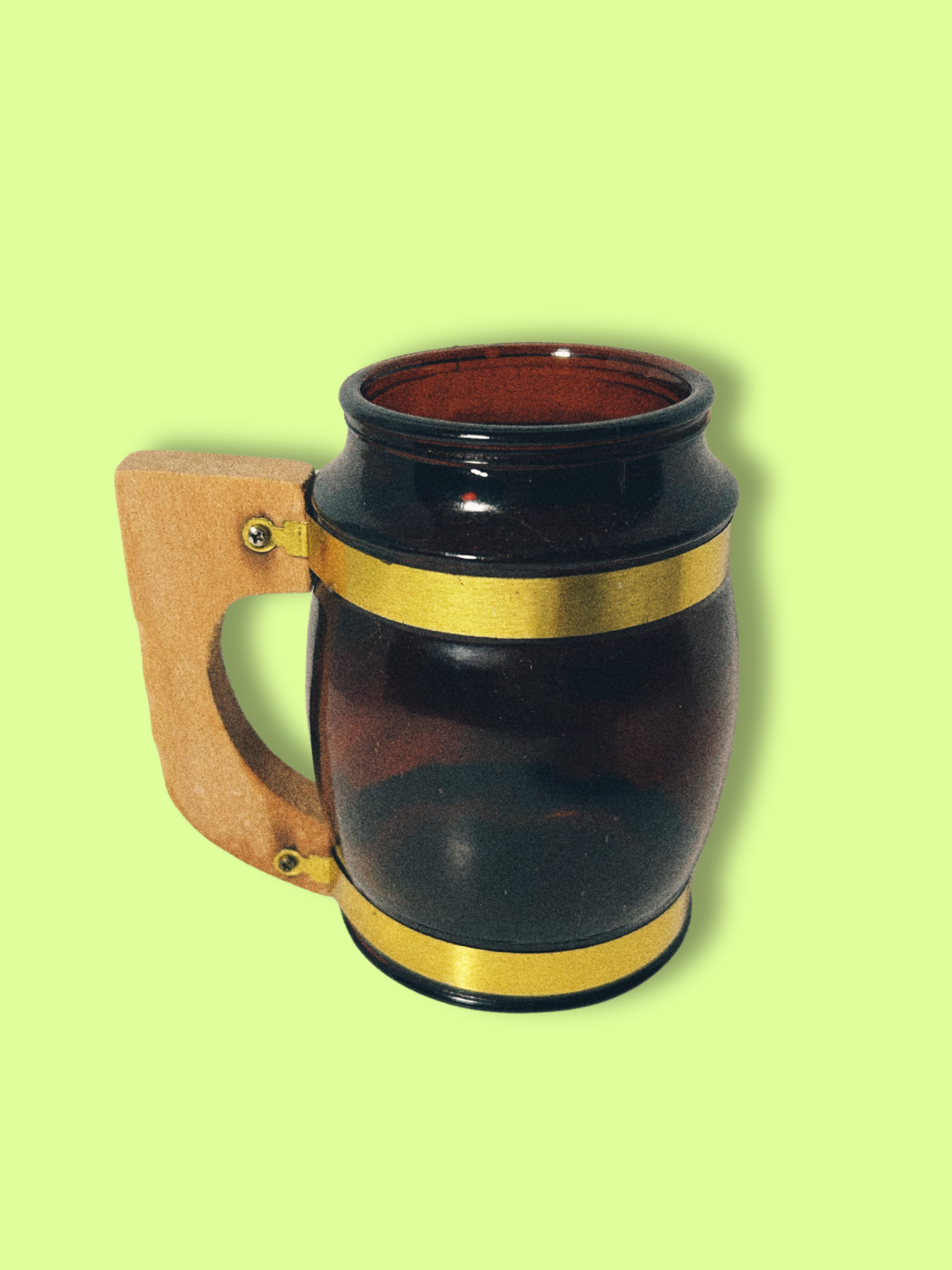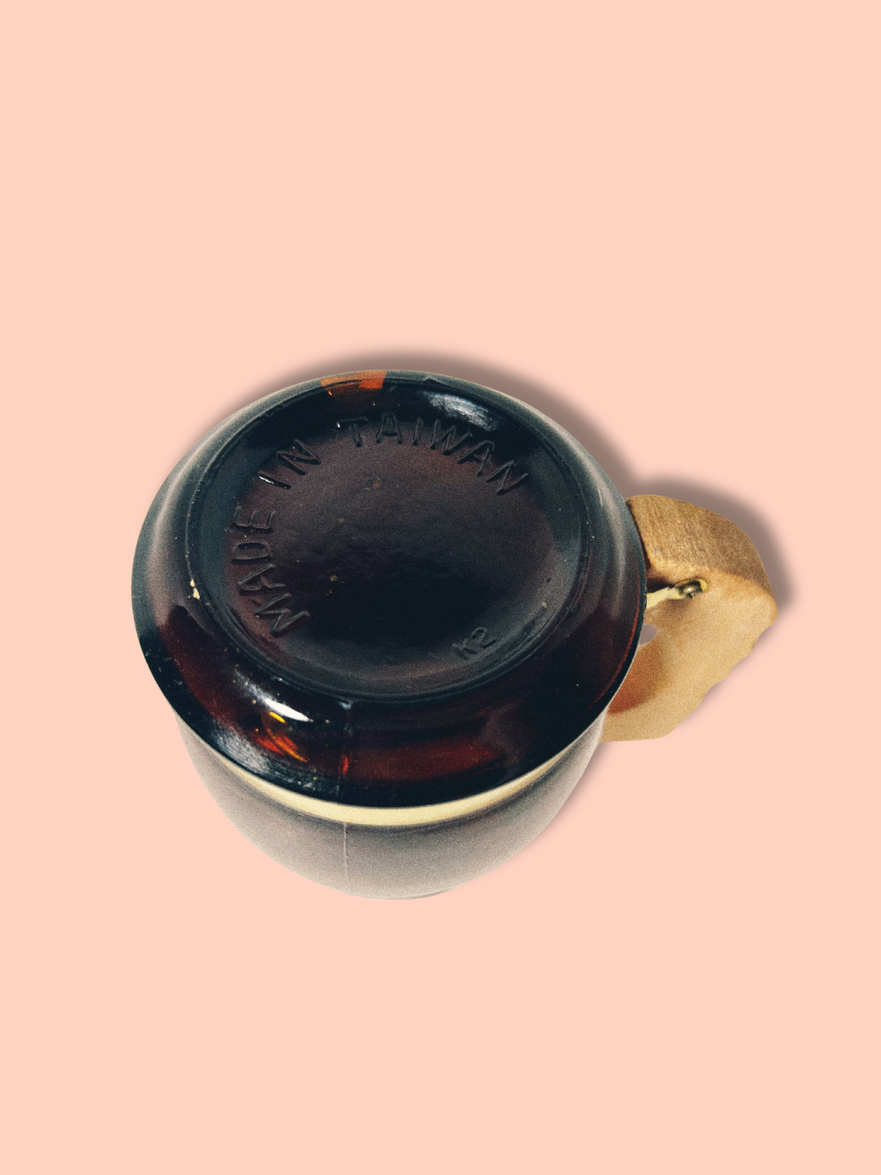 Add a touch of vintage charm to your morning coffee with our Vintage Amber Mug. Made in Taiwan, this mug features a unique wooden handle that adds a rustic feel. Start your day off right with this quirky and stylish addition to your mug collection. (Mug pun not intended!)
