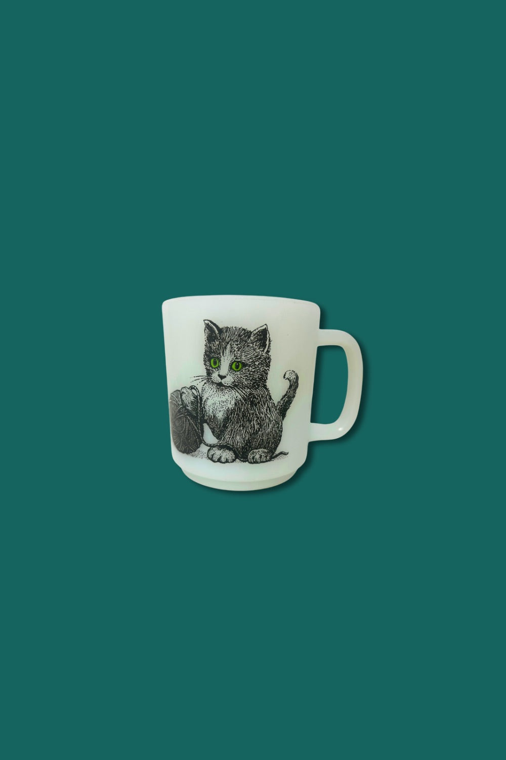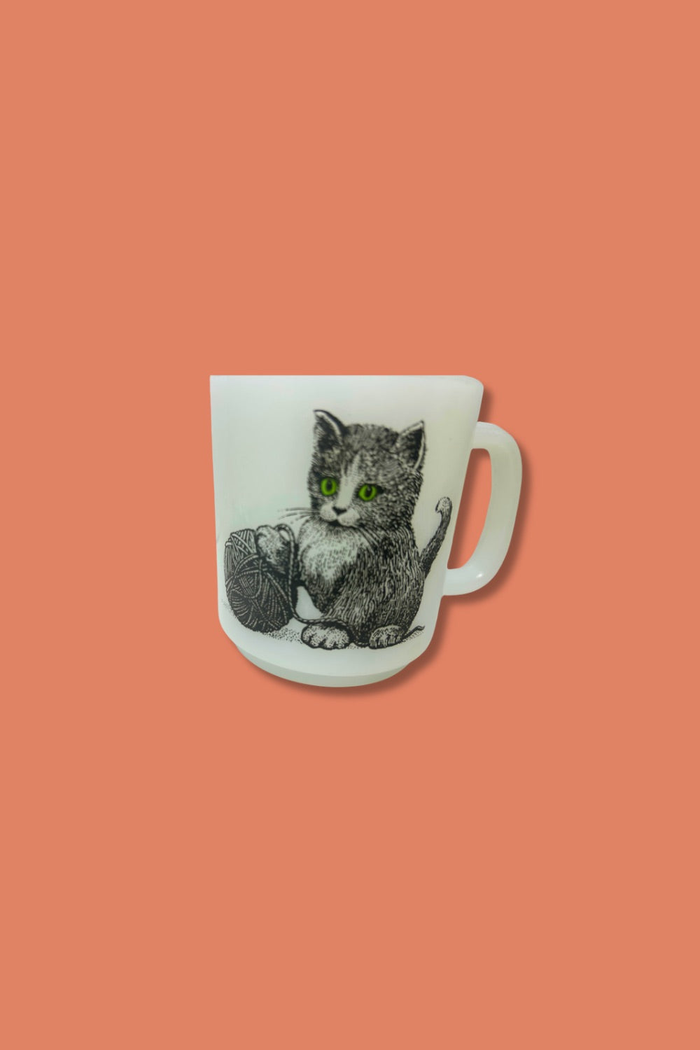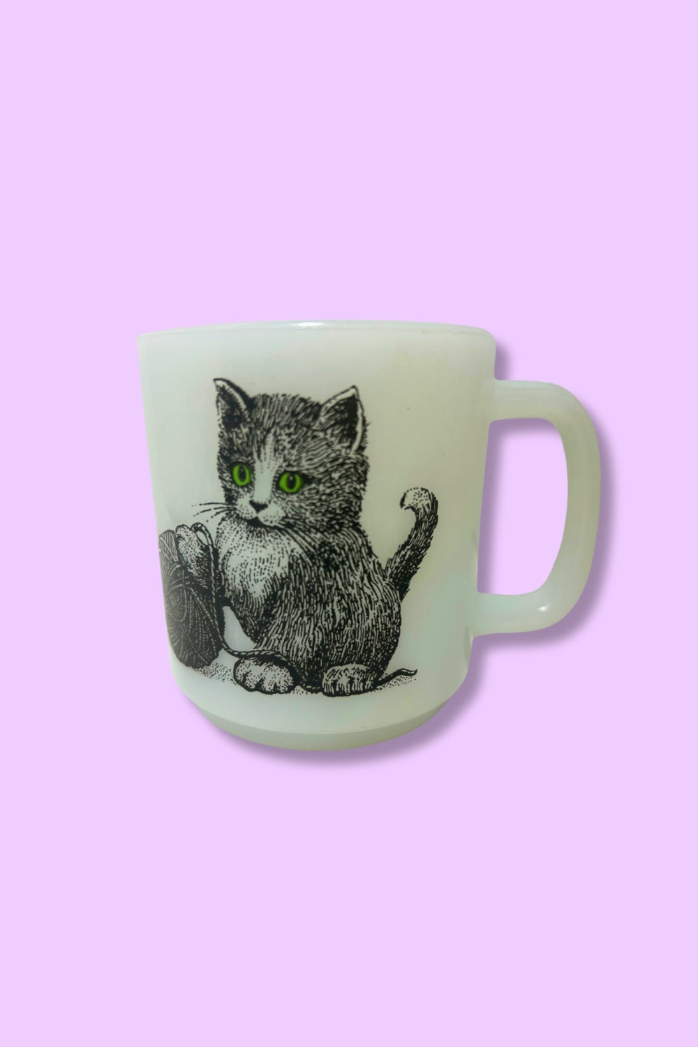 This Vintage Cat Glasbake Milk Glass Mug combines charming retro appeal with durable milk glass construction. Its unique cat design adds a playful touch to your drinkware collection, making every sip delightful. Perfect for collectors or anyone looking to add a nostalgic, stylish mug to their kitchen. Enjoy your favorite beverages in a piece that blends vintage character with everyday practicality.