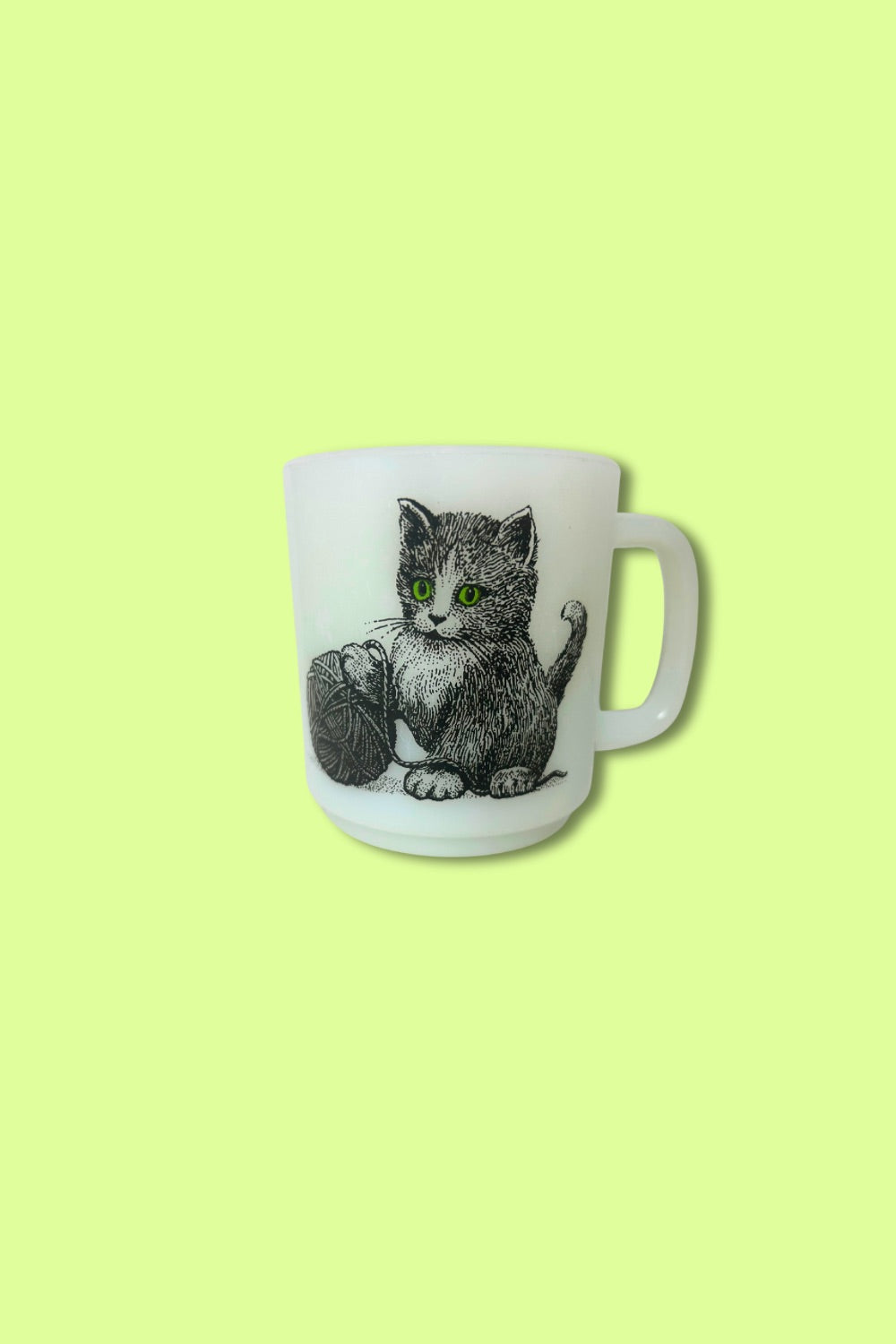 Vintage Cat Glasbake Milk Glass Mug